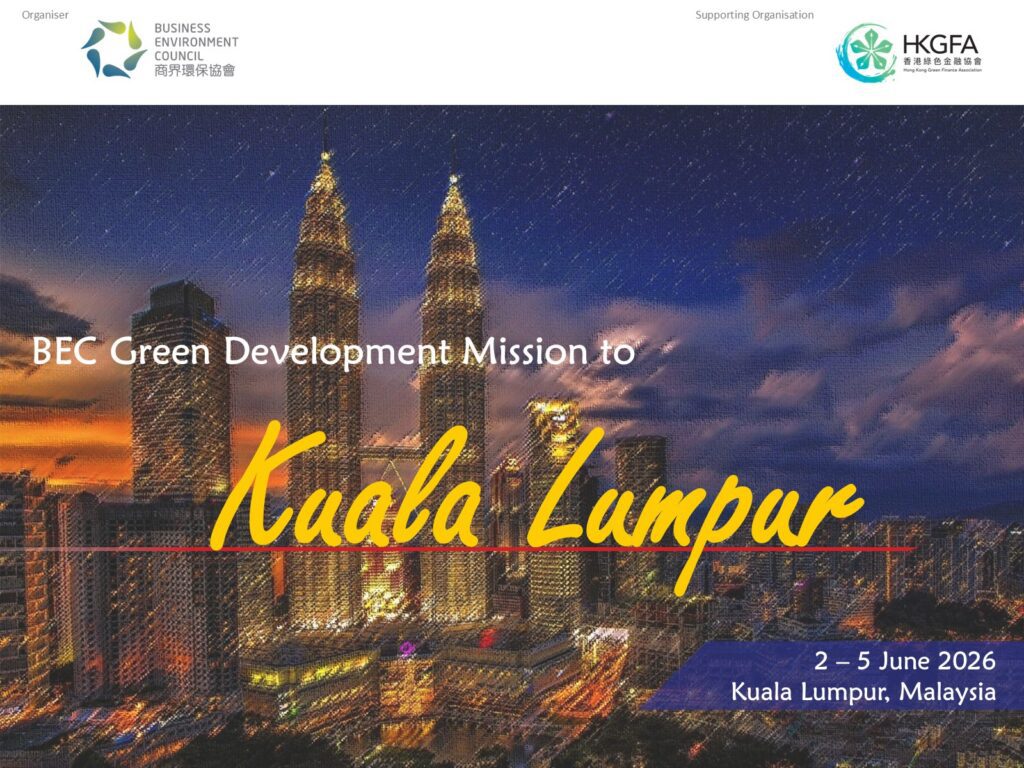 Malaysia plays a key role in the Belt and Road Initiative as one of ASEAN’s earliest partners. Business Environment Council (“BEC”) is pleased to invite you to our four-day Green Development Mission to Kuala Lumpur and nearby cities from 2 to 5 June 2026. This exclusive visit will connect Hong Kong business leaders with the Malaysian government and Malaysia’s vibrant sustainability ecosystem, fostering partnerships in green technologies, energy transition, nature and sustainable urban development.