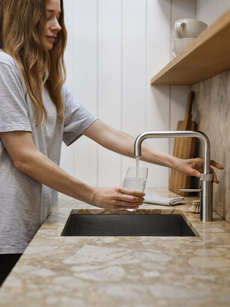 Quooker also helps reduce plastic waste. With the CUBE, users can draw chilled filtered and sparkling water directly from the tap, eliminating the need for single‑use bottles and preventing the common habit of letting water run to get it cold.