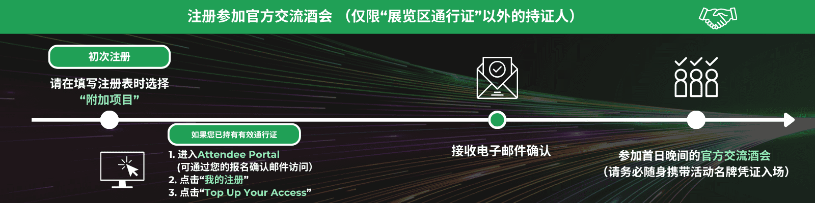 交流酒会门票仅限已登记的全票通行证代表、参展商、演讲嘉宾及赞助商优先购买,先到先得 (*需付行政费用)